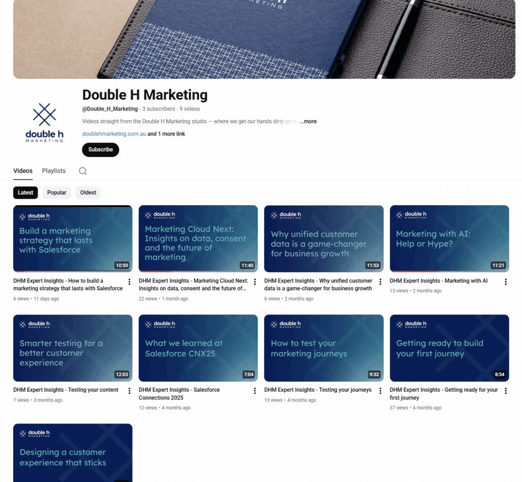 - Channel optimisation: auditing and refreshing core channels including website, LinkedIn, and email to ensure a strong digital foundation.